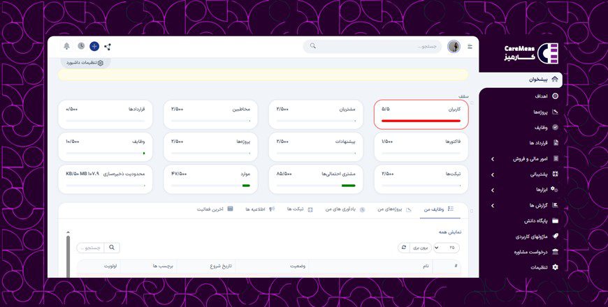 امکان یکپارچه سازی با سایر نرم افزارهای داخلی و داشتن یک نرم افزار کامل و جامع برای رفع تمامی نیازهای کسب وکار شما، ازجمله خدماتی است که کارمیز به شما ارائه می دهد.